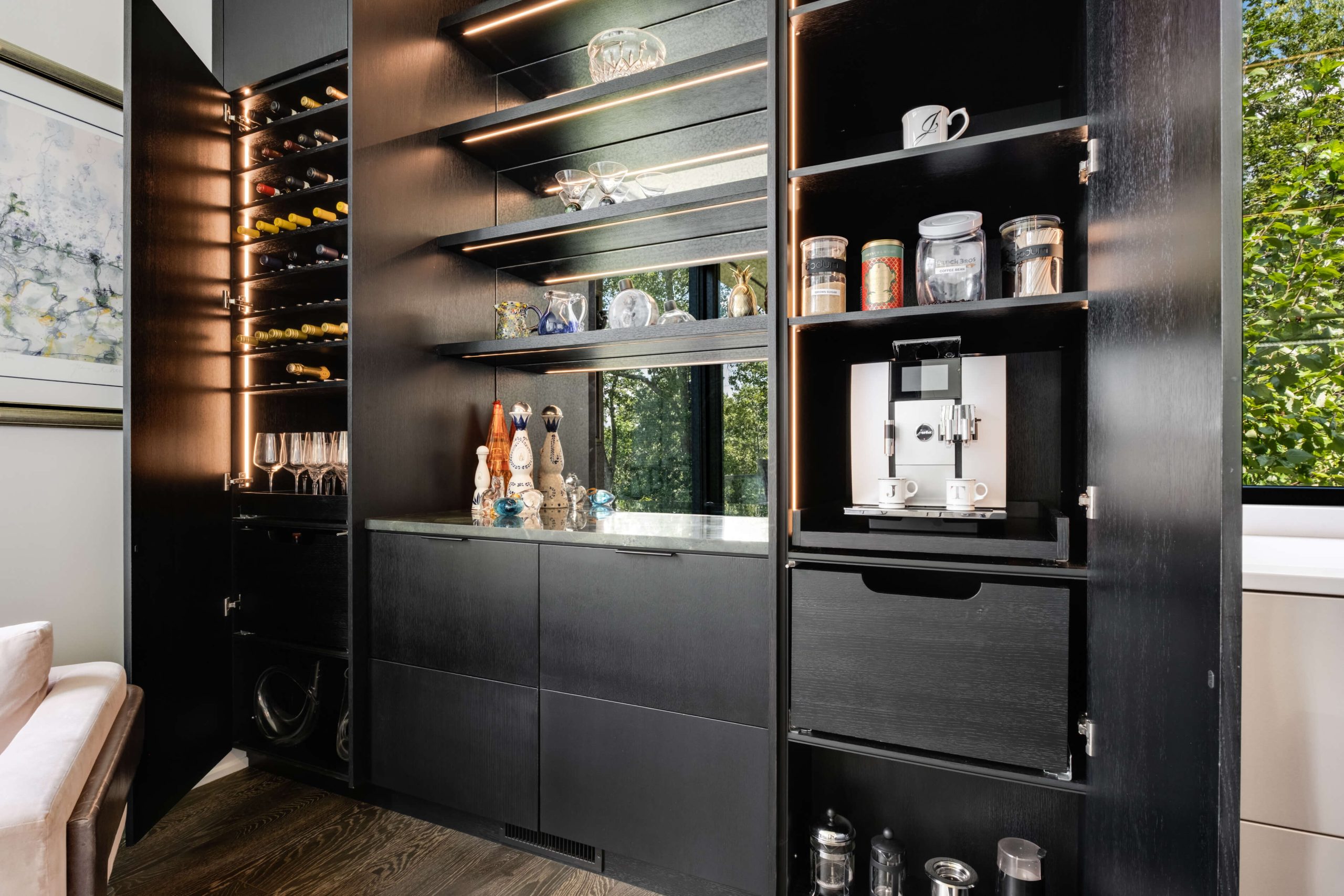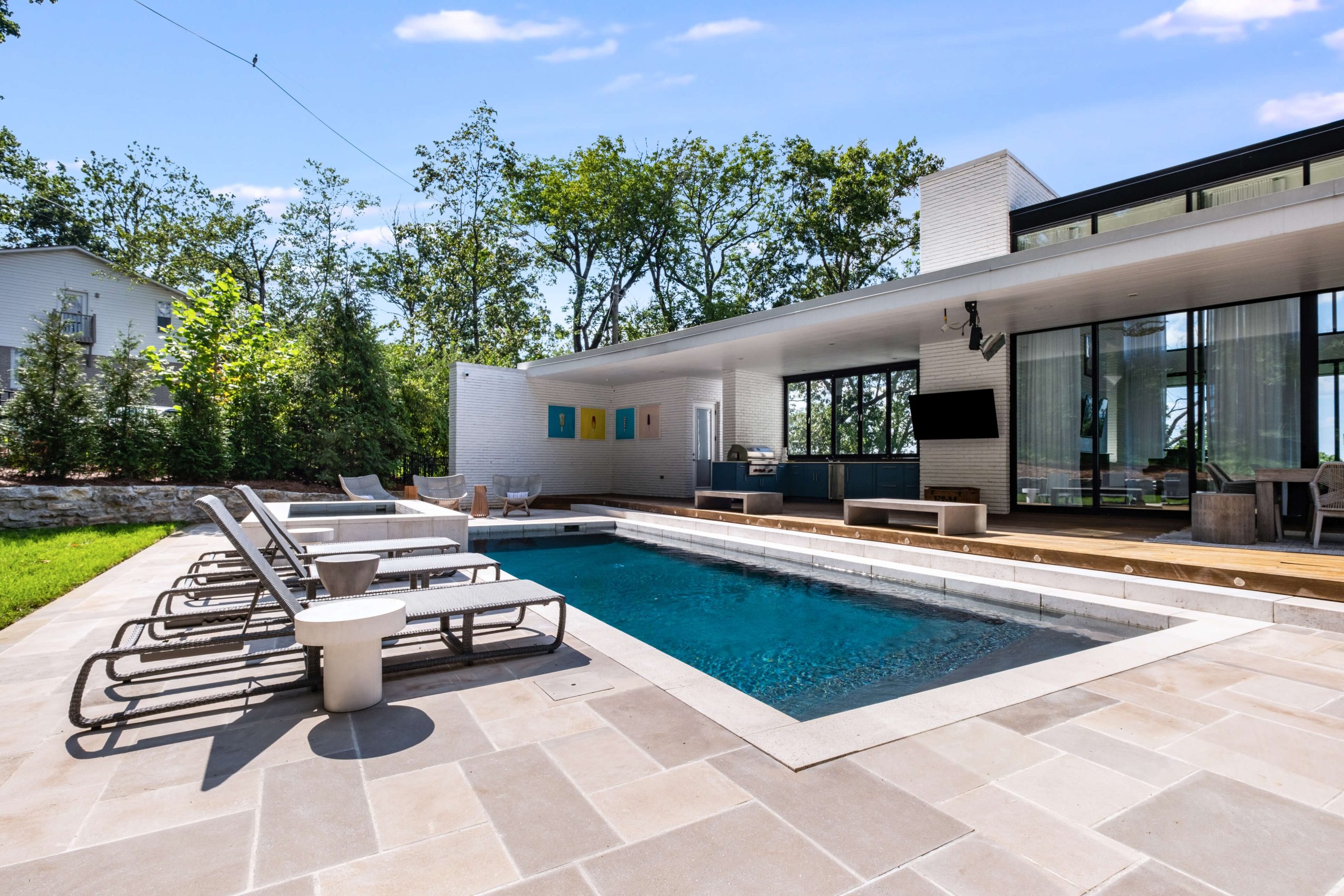 Transforming from a modest dwelling to a breathtaking modern oasis, this home remodel spared no luxury. The once standard pool underwent a stunning renovation, flanked by an outdoor kitchen and seating area perfect for entertaining under the stars. Inside, the kitchen became a culinary haven, while a sophisticated wine room offered the perfect setting for connoisseurs. Lavish primary closets and the convenience of an elevator added practical opulence, while the driveway and landscaping exuded curb appeal. Topping it off, a captivating voodoo lounge emerged as a playful and intriguing retreat within the home's design.